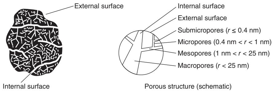 活性炭的孔系统通常被描述为“从宏孔分叉出的多级孔道”:
