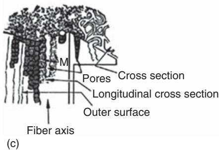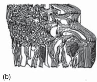 碳纤维的物性离不开层状结构的组织方式。常见超结构模型包括:二维带状模型、三维板片模型、环/管模型,以及更适用于高温后处理纤维的“软管状层片堆叠”模型。这些模型本质上是在描述同一件事:平行堆叠的多环芳香层如何沿纤维轴向排列,以及层片曲率与错排如何分布。