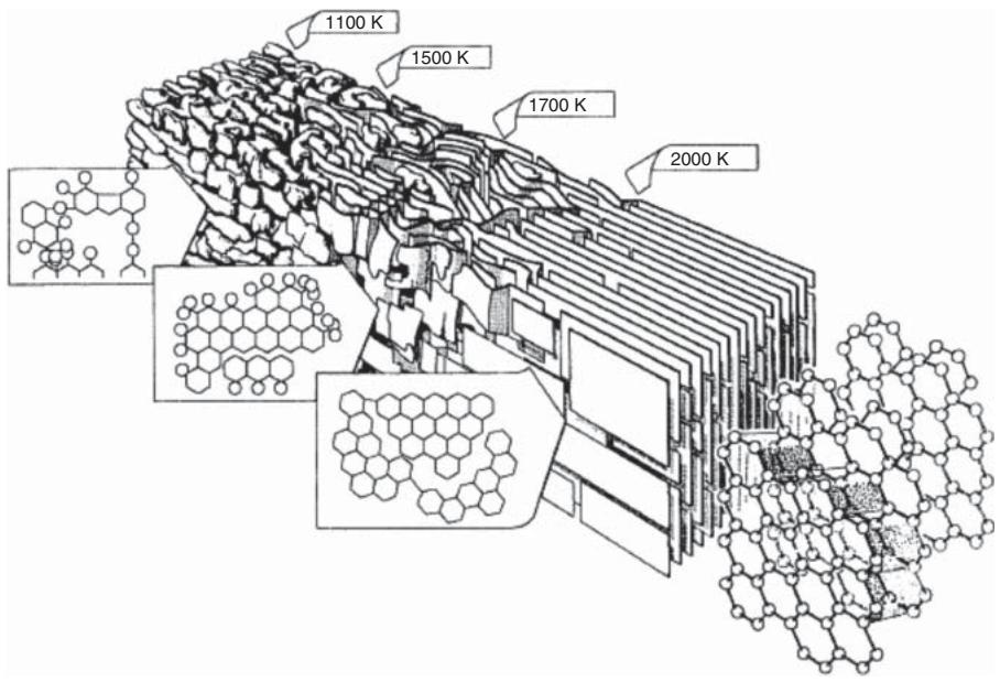 图2. 碳纤维内部类石墨层片的结构发展示意