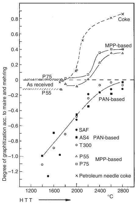 这一区别也会在 X 射线结构测量与石墨化程度评估中被反复验证:PAN 基纤维的石墨化程度保持为负值,因此“石墨纤维”这一称呼只应谨慎用于可石墨化的沥青基体系,并且需要以后处理到石墨化温区作为前提。