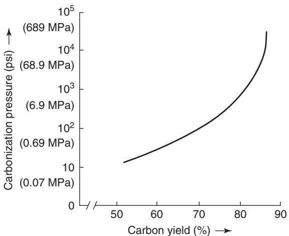 图5. 石油沥青在压力炭化条件下的成碳收率随压力变化