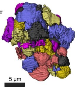 (B) NMC 颗粒表面的 Mn 富集层;(F) Ti 元素在 LCO 颗粒内部形成的晶界网络。