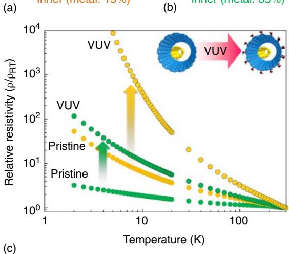 在双壁体系里,内层金属性管的比例曾出现过明显差异:豌豆荚路线约 15%,CCVD 路线约 35%。用真空紫外(VUV)处理后,导电性会下降,且内层金属性比例更低的样品下降更明显。把这些现象放在一起看,导电性与金属性管的含量存在紧密对应关系。在同等直径与手性分布下,双壁巴基纸的宏观导电能力可以优于单壁体系。