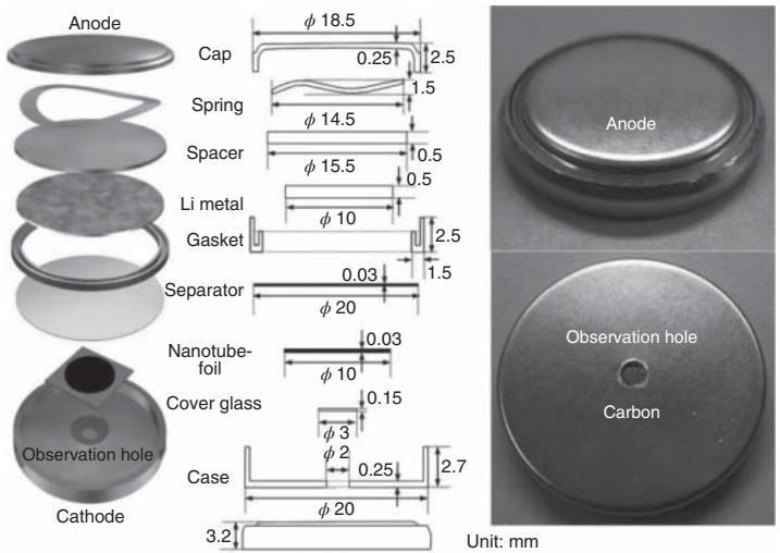 图5. 用于锂离子电池测试的扣式电池结构示意
