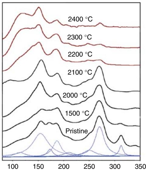 图15. 不同热处理温度下双壁束的低频拉曼谱与拟合分析示意