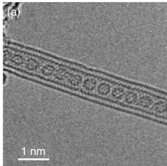 图9. 填充型碳纳米管的高分辨电镜图:金属原子线封装
