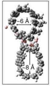 一维内腔可以被当作纳米尺度的试管。典型结构是富勒烯封装形成的豌豆荚,再通过约 1200°C 热处理得到双壁结构。除了富勒烯,还可以封装金属原子线,或封装一维硫链。更有意思的是准高压效应:纳米空间内可以形成类似高压条件的局域环境,甚至能插入碘化钾并观察到只在约 1.9 GPa 压力下存在的 B2 相。这类现象使碳纳米管成为研究极端条件下纳米晶相的独特平台。